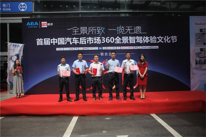 在此次秋季展中還開展了“首屆中國汽車后市場360全景智駕體驗文化節(jié)”,深圳道可視科技有限公司劉經理(左四)出席文化節(jié)開幕。