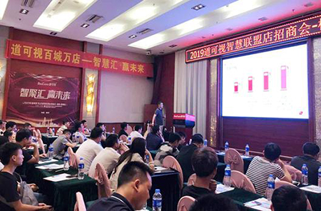 隨后,針對(duì)于大家所關(guān)注的“智慧聯(lián)盟店”,道可視大區(qū)經(jīng)理伍招權(quán)進(jìn)行了重點(diǎn)介紹,他從市場(chǎng)體系、加盟方案、銷售模式和加盟優(yōu)勢(shì)四個(gè)維度進(jìn)行了詳細(xì)宣講,引起現(xiàn)場(chǎng)終端門店的極大興趣。